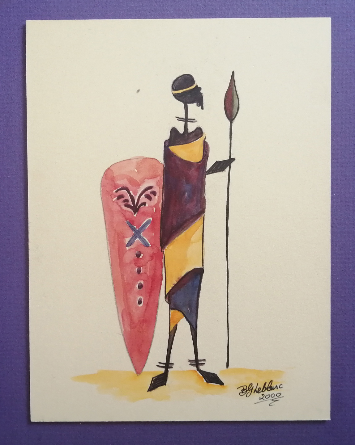 Unframed – East African warrior – watercolour