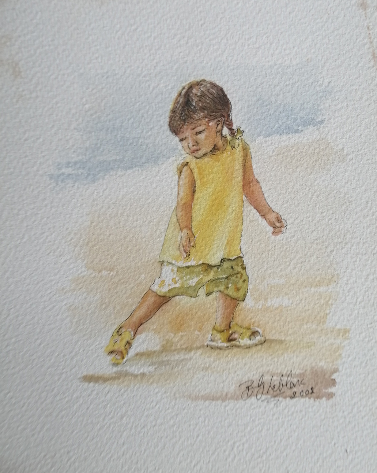 Unframed – Girl on a beach – watercolour