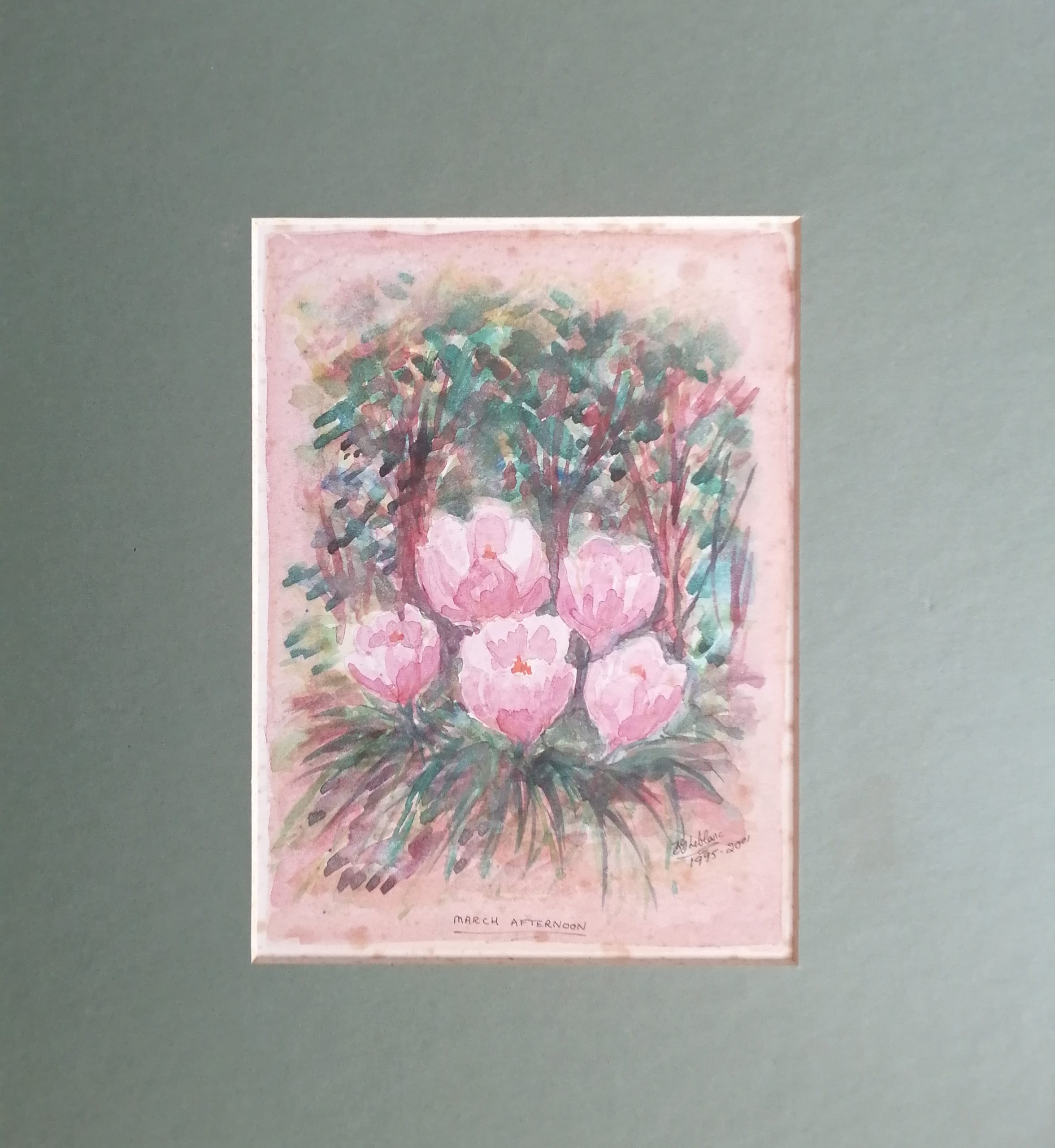 Mounted – March afternoon flowers – watercolour