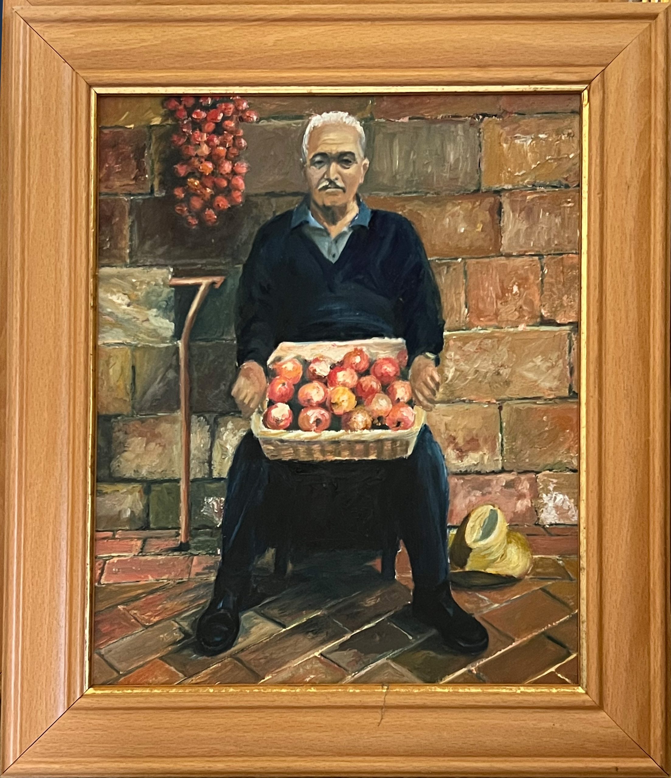 Framed – Man holding pomegranates – oil painting