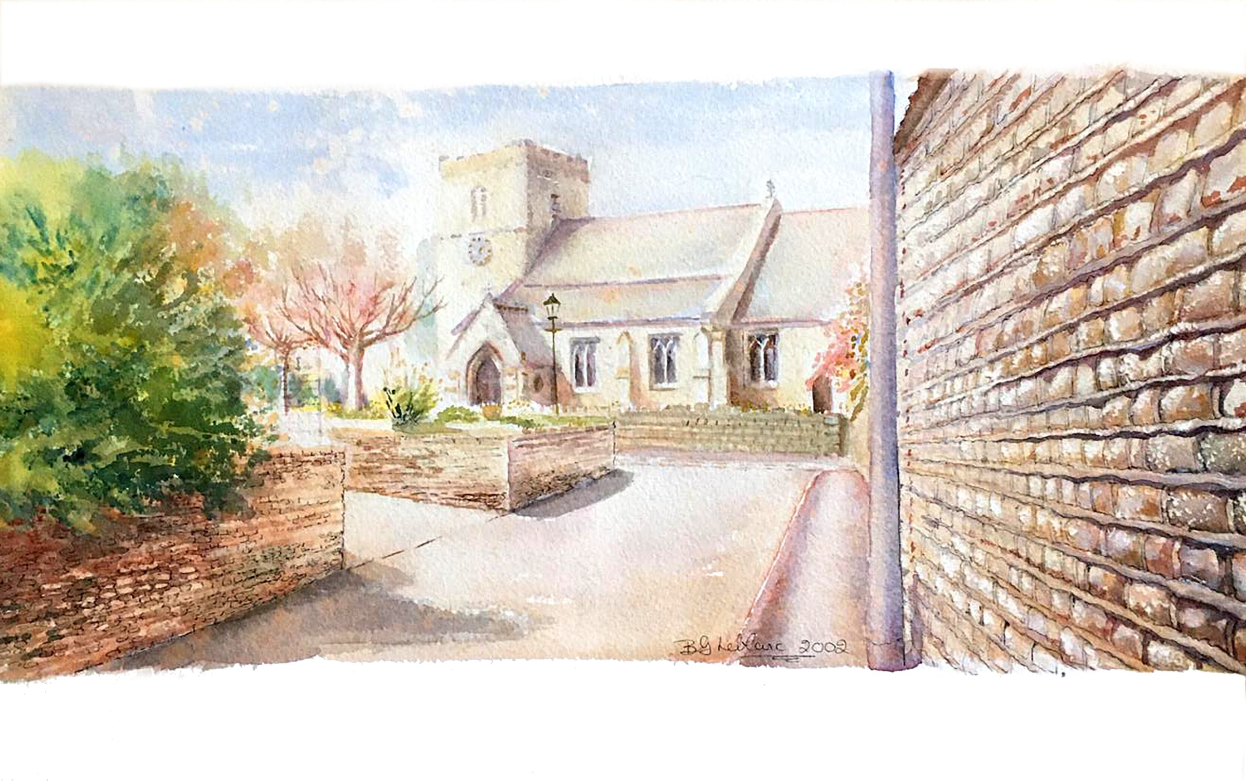 Unframed watercolour print of St Mary’s Church, Roxby viewed from Middle Street.